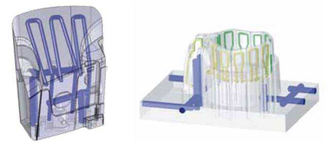 模具水道設(shè)計(jì) 1. 水道孔徑大小設(shè)計(jì) 水道采用5-6mm大小的孔徑;水嘴用1/8或3/8的牙(模具側(cè)),另一側(cè)用3/4英制螺紋(老式接法);管件材料用不銹鋼管;現(xiàn)在我們改成一進(jìn)一出,分流口最好是做在模具內(nèi),接口采用能徑 ...